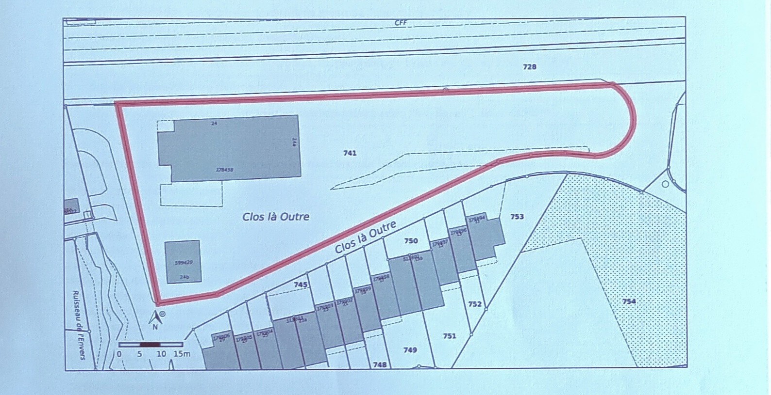 ~30 places bitumées en secteur constructible. Extension possible sans perte de rendement existant.